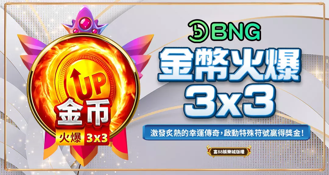 BNG電子金幣火爆3×3》是一款極具魅力且充滿爆發力的線上老虎機遊戲,將經典的3×3轉軸設計與現代遊戲創新完美結合。這款遊戲不僅延續了水果機類型的直觀操作,更融入了集鴻運、紅利遊戲以及多層次的彩金機制,讓每一位玩家在簡單的旋轉之中,也能享受到令人心跳加速的中獎體驗。