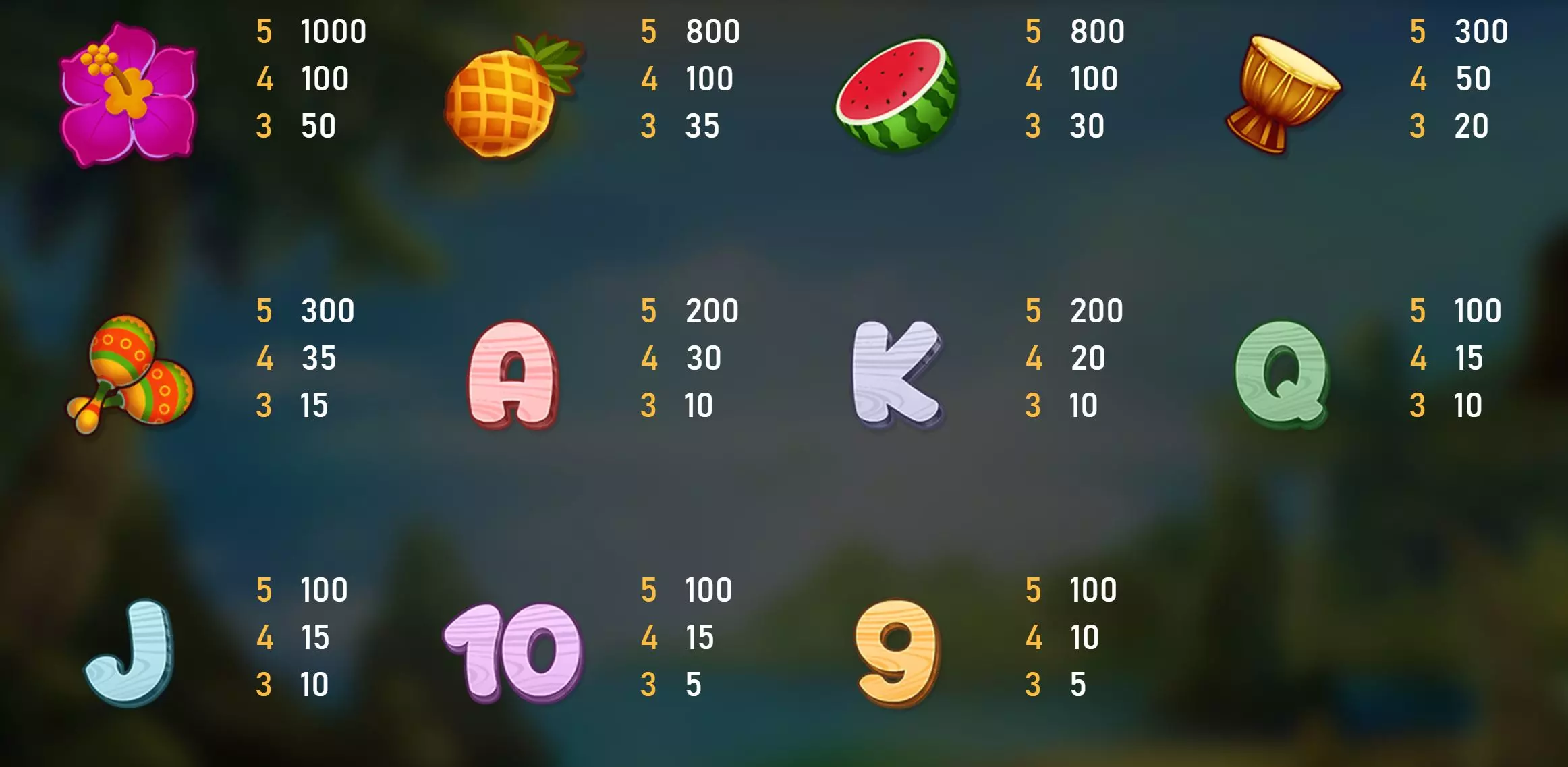 除了實用的百搭符號,《提金派對》的視覺設計更是令人陶醉。遊戲畫面充滿了濃厚的夏威夷熱帶風情,明亮的色彩與細膩的圖案設計讓玩家彷彿置身於陽光燦爛的海灘上。